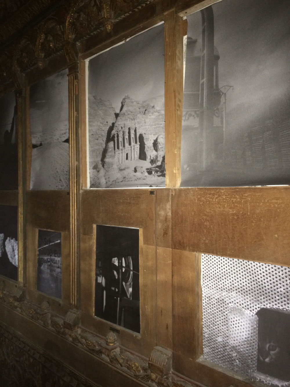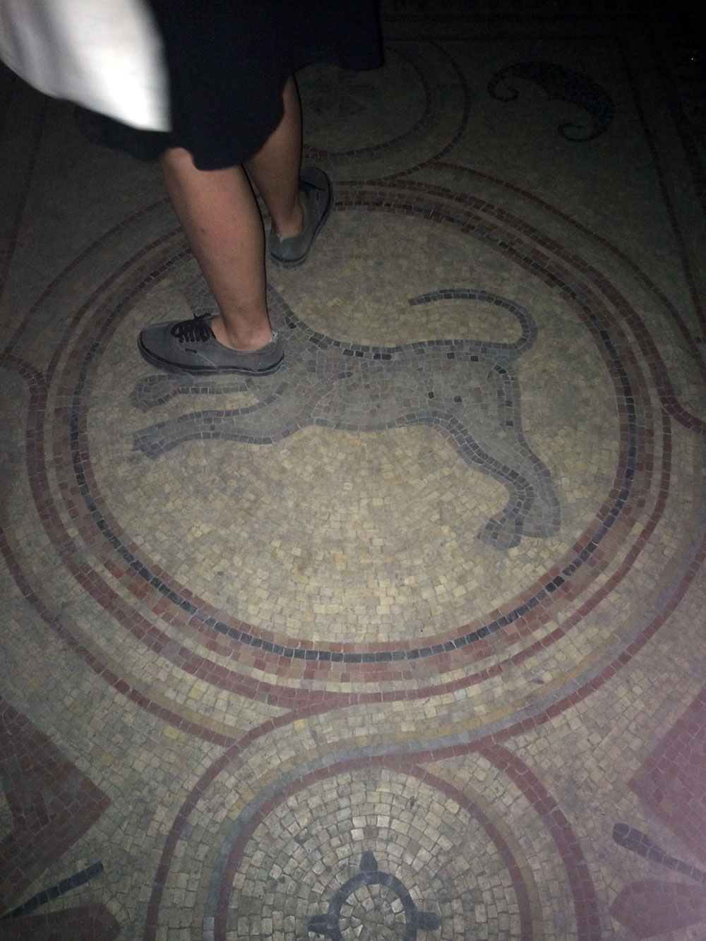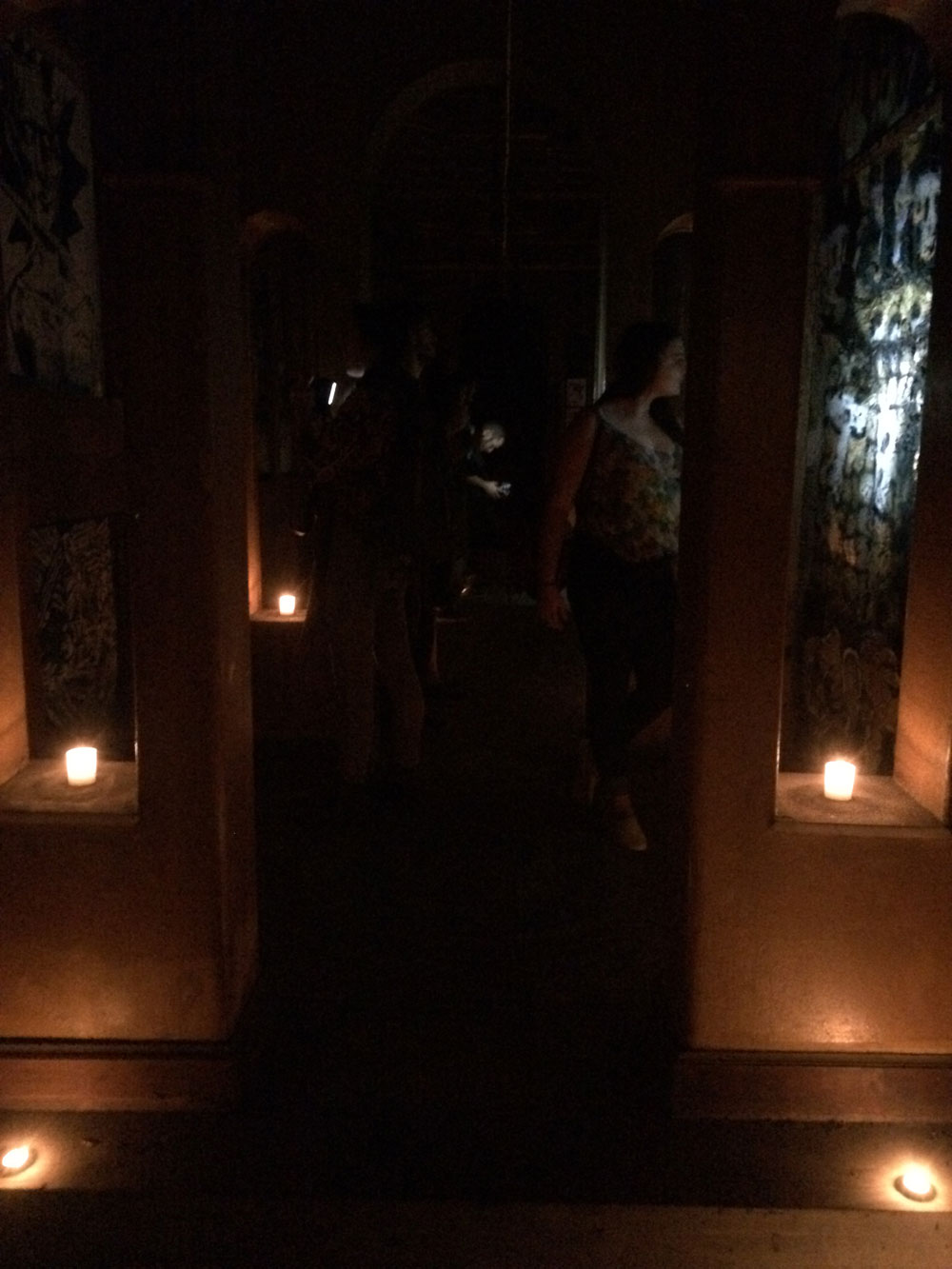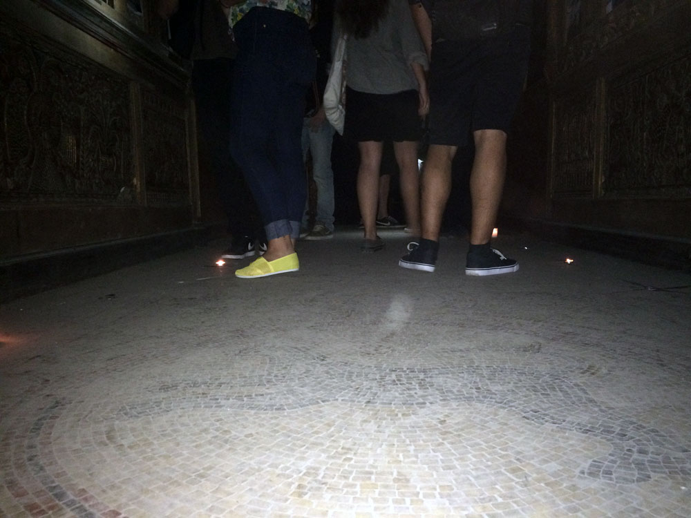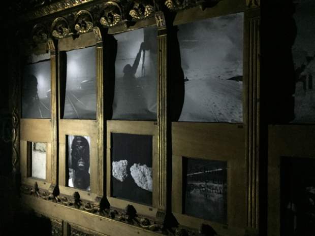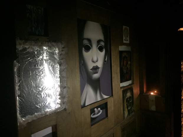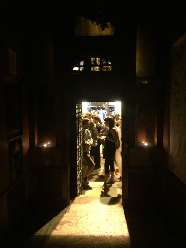 Και ξαφνικά, μια Τετάρτη απόγευμα, άνοιξε τις πόρτες του και μας κάλεσε να το εξερευνήσουμε. Στενό, ψηλοτάβανο, επιβλητικό,ατμοσφαιρικό. Σα να μην ήταν αρκετά μυστηριώδες, μπαίνοντας δεν είχε φώτα, μόνο λίγα ρεσό κεριά δεξιά κι αριστερά. Με το φακό του smartphone στο χέρι οι επισκέπτες κοίταζαν τα βυζαντινά ψηφιδωτά στο πάτωμα, το περίτεχνο ταβάνι και τα περίεργα έργα τέχνης στους τοίχους. Πορτραίτα, σκίτσα, τοιχογραφίες, σε μια εσοχή είχε μια φωτογραφία των Χουντικών, το ένα πιο περίεργο από το άλλο. Στο βάθος μια μαύρη κουρτίνα έκοβε το δρόμο προς το υπόλοιπο κτίριο. Πληροφορίες δε υπήρχαν, στην είσοδο μόνο μια αφίσα του Secretexpo, και μια αναζήτηση στο facebook ενημέρωναν ότι η είσοδος στην έκθεση ήταν δωρεάν για το κοινό, αλλά προσβάσιμη μόνο 19:00-23:00.