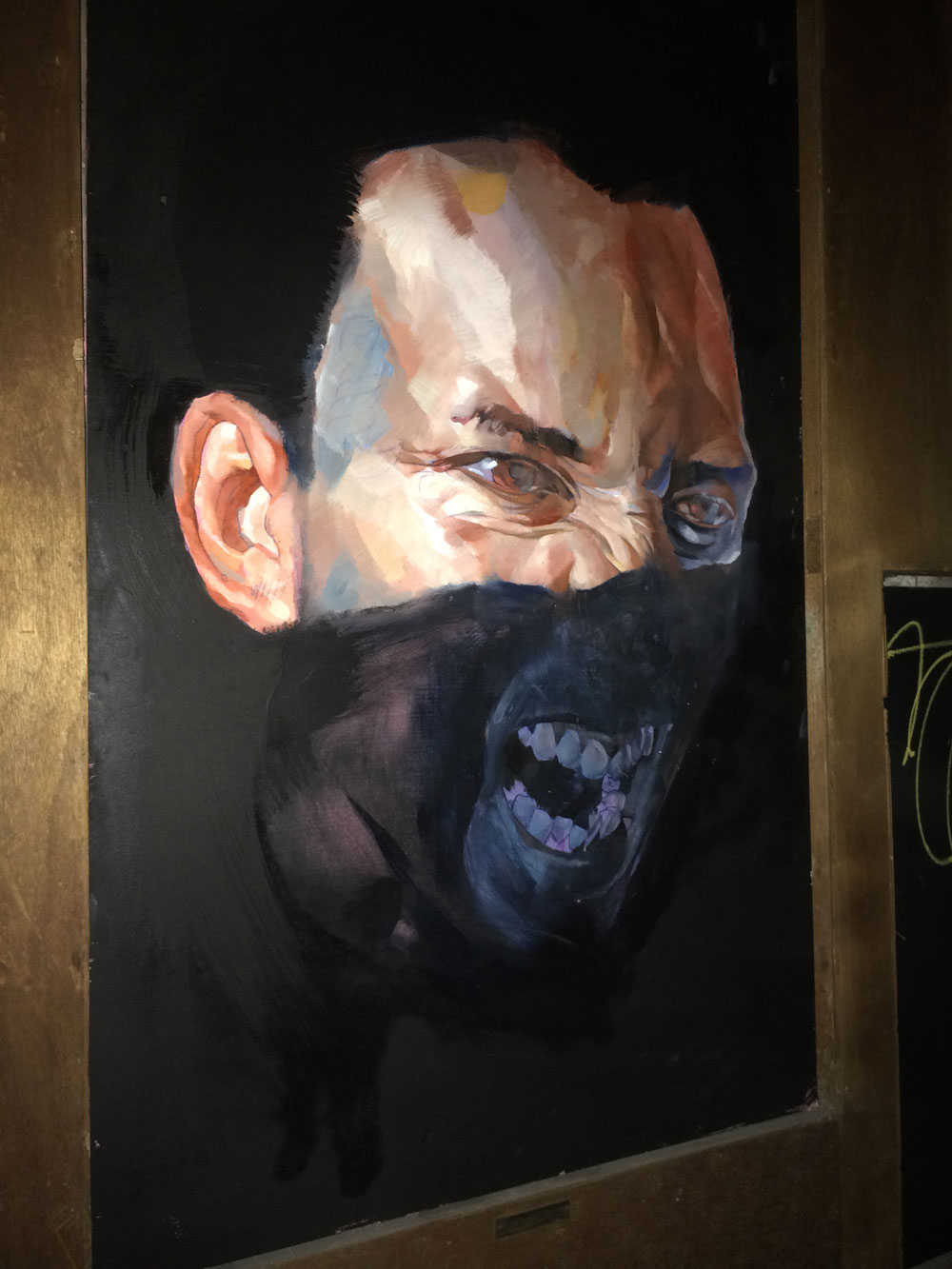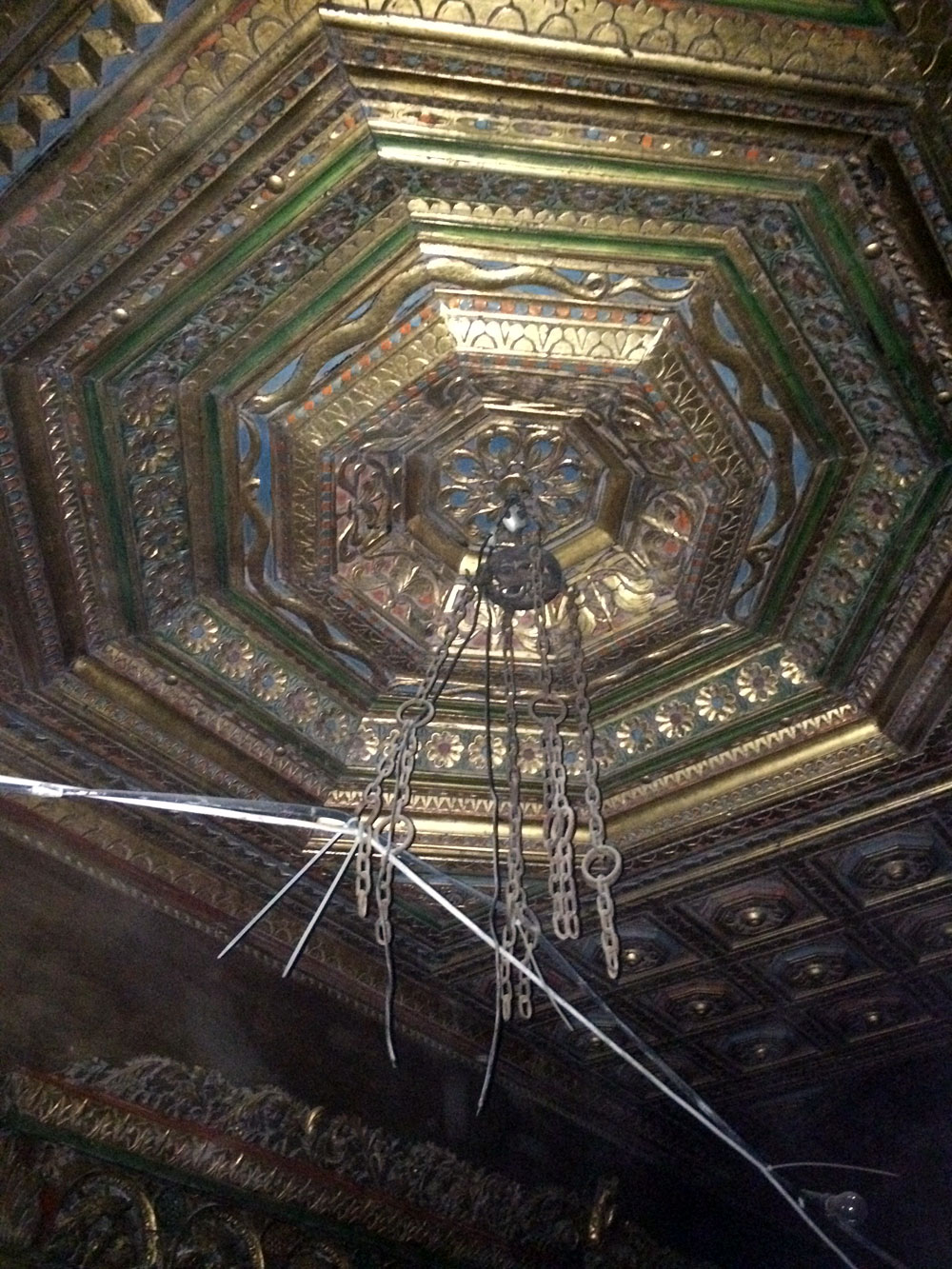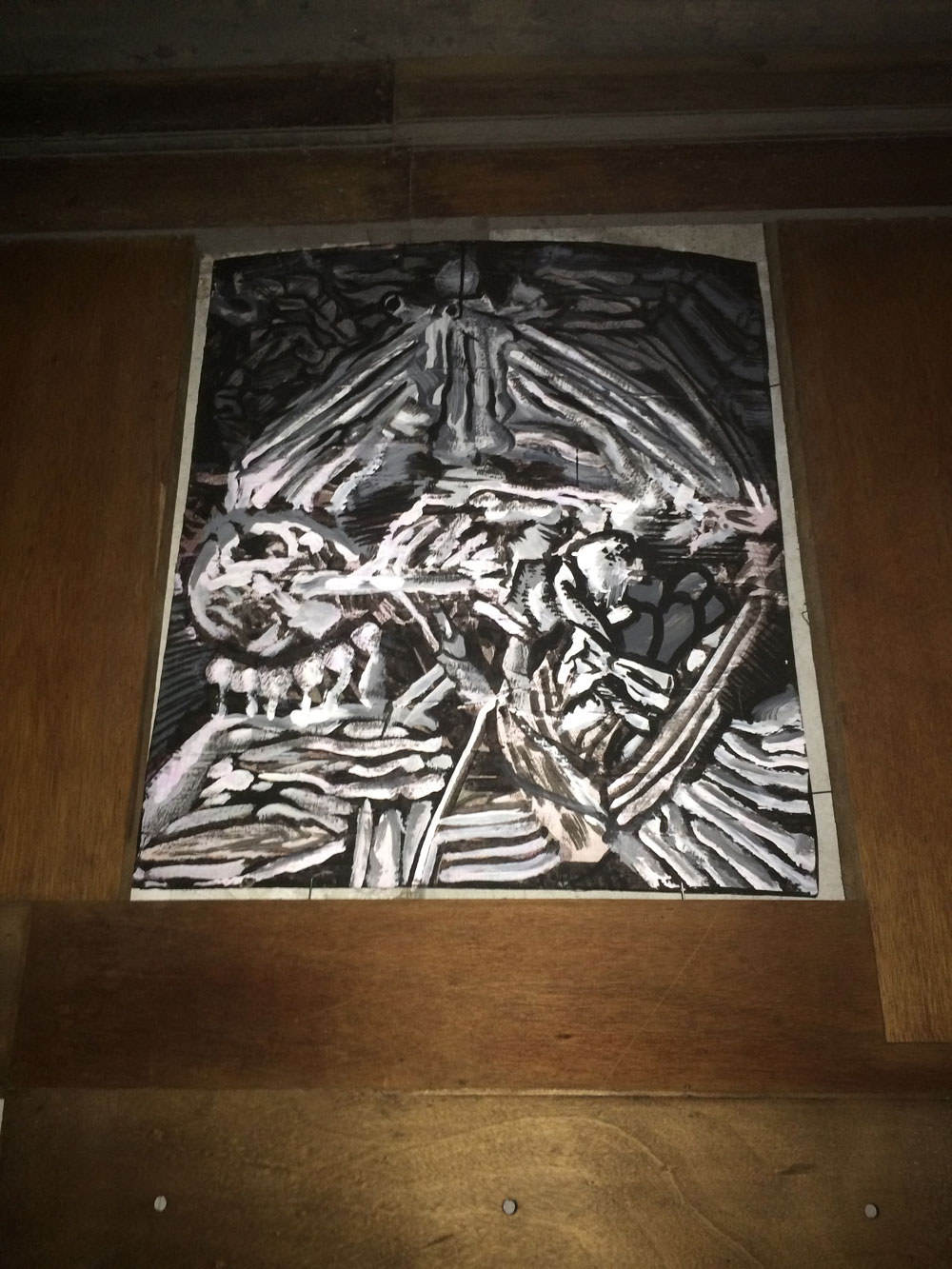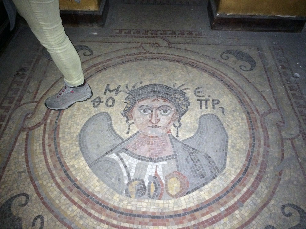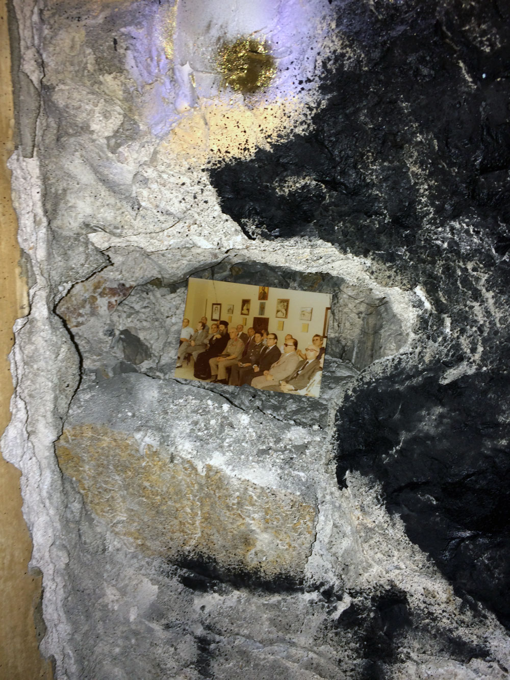 Και ξαφνικά, μια Τετάρτη απόγευμα, άνοιξε τις πόρτες του και μας κάλεσε να το εξερευνήσουμε. Στενό, ψηλοτάβανο, επιβλητικό,ατμοσφαιρικό. Σα να μην ήταν αρκετά μυστηριώδες, μπαίνοντας δεν είχε φώτα, μόνο λίγα ρεσό κεριά δεξιά κι αριστερά. Με το φακό του smartphone στο χέρι οι επισκέπτες κοίταζαν τα βυζαντινά ψηφιδωτά στο πάτωμα, το περίτεχνο ταβάνι και τα περίεργα έργα τέχνης στους τοίχους. Πορτραίτα, σκίτσα, τοιχογραφίες, σε μια εσοχή είχε μια φωτογραφία των Χουντικών, το ένα πιο περίεργο από το άλλο. Στο βάθος μια μαύρη κουρτίνα έκοβε το δρόμο προς το υπόλοιπο κτίριο. Πληροφορίες δε υπήρχαν, στην είσοδο μόνο μια αφίσα του Secretexpo, και μια αναζήτηση στο facebook ενημέρωναν ότι η είσοδος στην έκθεση ήταν δωρεάν για το κοινό, αλλά προσβάσιμη μόνο 19:00-23:00.