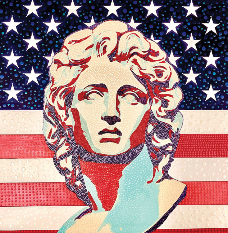 Σε ένα από τα έργα σας απεικονίζετε τον Αλέξανδρο με την αμερικανική σημαία στο background. Πολύ ενδιαφέρον, αλλά ίσως και λίγο παράξενο;