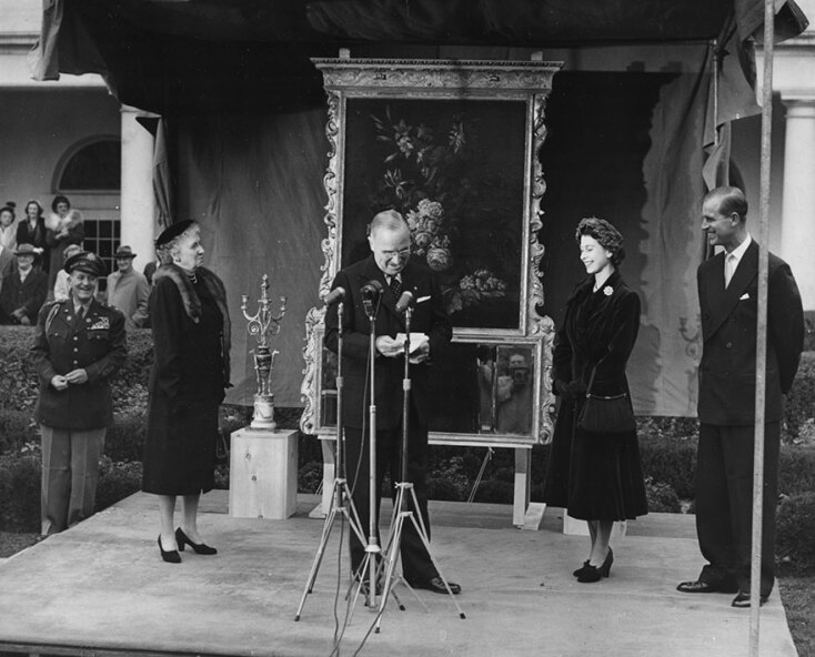 «Έχουμε πολλούς διακεκριμένους επισκέπτες εδώ σε αυτήν την πόλη, αλλά δεν είχαμε ποτέ ένα τόσο υπέροχο νεαρό ζευγάρι που να αιχμαλωτίζει πλήρως τις καρδιές όλων μας. Θέλουμε να επιστρέψετε ξανά. Μου έχει αναφερθεί ότι θα θέλατε να επιστρέψετε ξανά και να φέρετε τα υπέροχα παιδιά σας. Όταν το κάνετε αυτό, ελπίζουμε ότι η αποκατάσταση του Λευκού Οίκου θα ολοκληρωθεί και θα μπορείτε να δείτε αυτό το δώρο εγκατεστημένο στη θέση του στο Blue Room. Δεν ξέρω ποιοι θα είναι τότε οι προσωρινοί κάτοικοι του Λευκού Οίκου, αλλά μπορείτε να είστε σίγουροι γι’ αυτό: Ανεξάρτητα από το ποιοι είναι, εσείς και η οικογένειά σας θα είστε πάντα ευπρόσδεκτοι» είχε πει τότε ο Χάρι Τρούμαν.