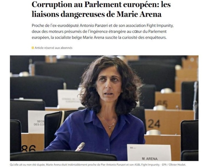 Σύμφωνα με το δημοσίευμα που επικαλείται αποσπάσματα από την αναφορά των βελγικών υπηρεσιών που ασχολήθηκαν με το Qatargate, «η Μαρί Αρενά αξιοποιούσε τις συμβουλές και την επιρροή του Παντσέρι και εκείνος χρησιμοποιούσε τη θέση της Αρενά ως προέδρου της επιτροπής ανθρωπίνων δικαιωμάτων μέσα στο Ευρωπαϊκό Κοινοβουλίου για να ασκήσει την επιρροή του».