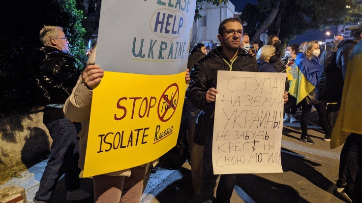Φωτορεπορτάζ από τη διαδήλωση για τον πόλεμο στην Ουκρανία έξω από το προξενείο της Ρωσίας στην Αθήνα