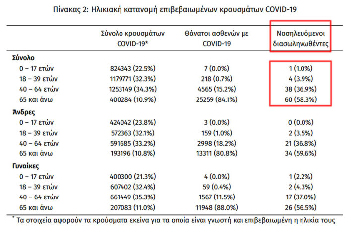 «Τα νέα εργαστηριακά επιβεβαιωμένα κρούσματα της νόσου(άτομα) που καταγράφηκαν τις τελευταίες 24 ώρες ήταν 9.288. Ο συνολικός αριθμός των ατόμων που νόσησαν, ανέρχεται σε 3.517.898 (ημερήσια μεταβολή +0.3%), εκ των οποίων 48.7% άνδρες.