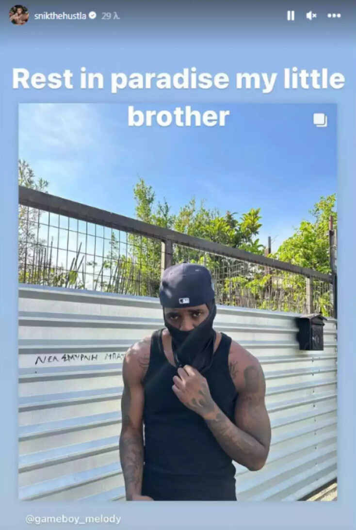 Ο Snik αποχαιρέτησε τον Gameboy με δύο stories στο Instagram. Στην πρώτη του ανάρτηση, δημοσίευσε μία φωτογραφία του 23χρονου τράπερ και έγραψε: «Αναπαύσου εν ειρήνη αδελφέ μου».