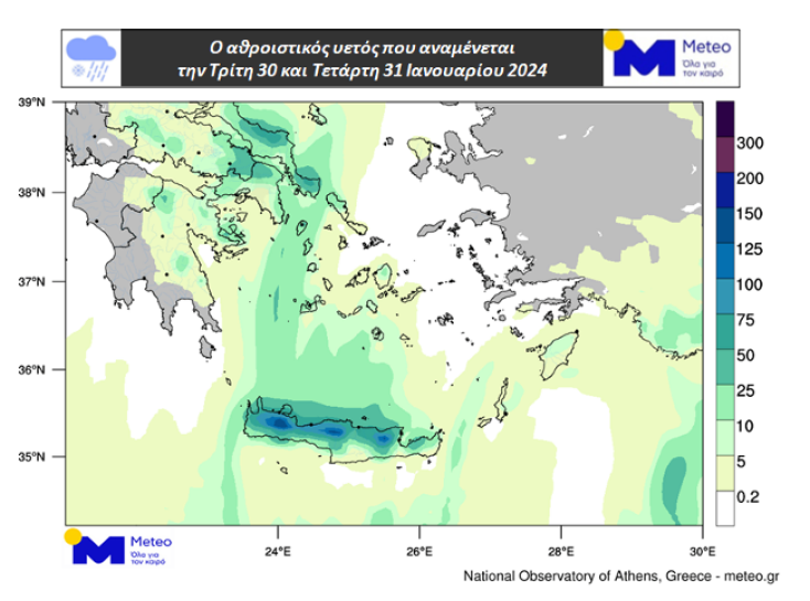 Στη συνέχεια τα φαινόμενα θα παρουσιάσουν σημαντική σταδιακή εξασθένηση και από το πρωί της Τετάρτης 31/01 θα περιοριστούν στην Ανατολική Στερεά και Πελοπόννησο, στην Εύβοια και κυρίως στην Κρήτη.