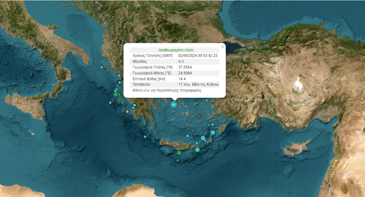 Σεισμός τώρα στην Κύθνο - Αισθητός και στην Αττική - Το επίκεντρο και το εστιακό βάθος