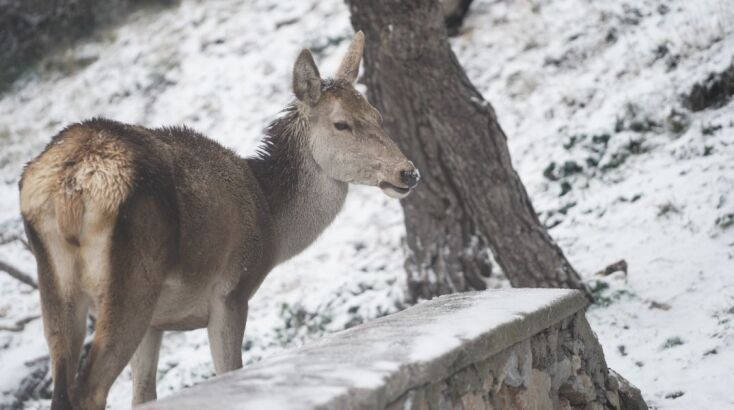 Μαγευτικές εικόνες από το χιονισμένο τοπίο στην Πάρνηθα - Ελάφια κάνουν τον χειμωνιάτικο περίπατό τους στο λευκό τοπίο