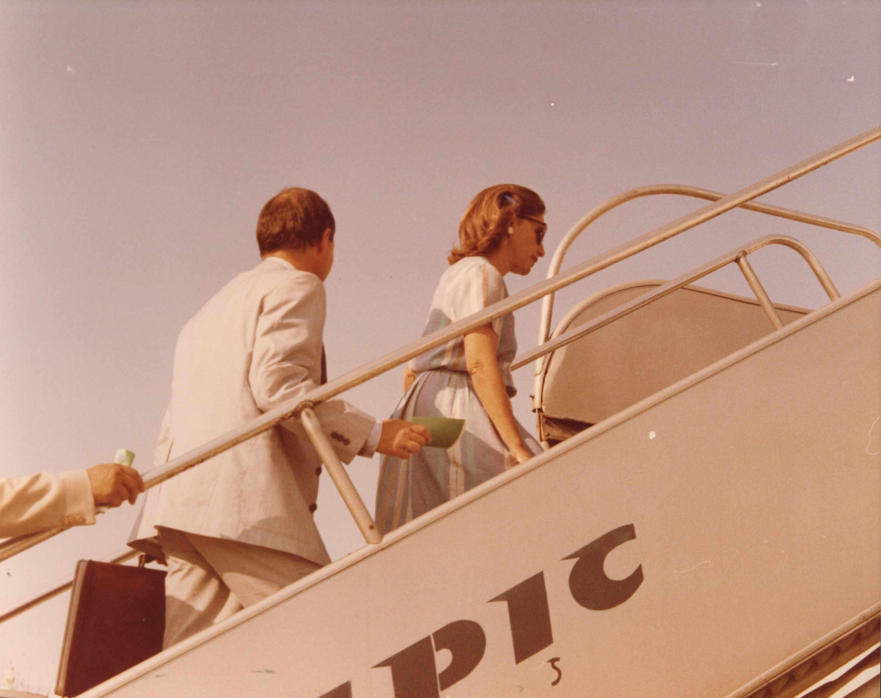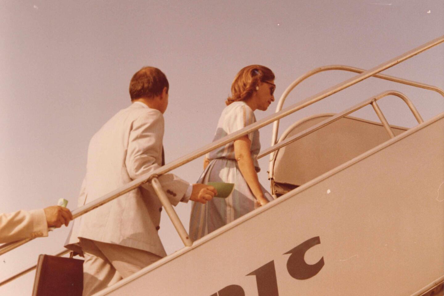 Κώστας και Δάφνη Σημίτη, επιβίβαση σε αεροπλάνο © Ίδρυμα Κώστα Σημίτη