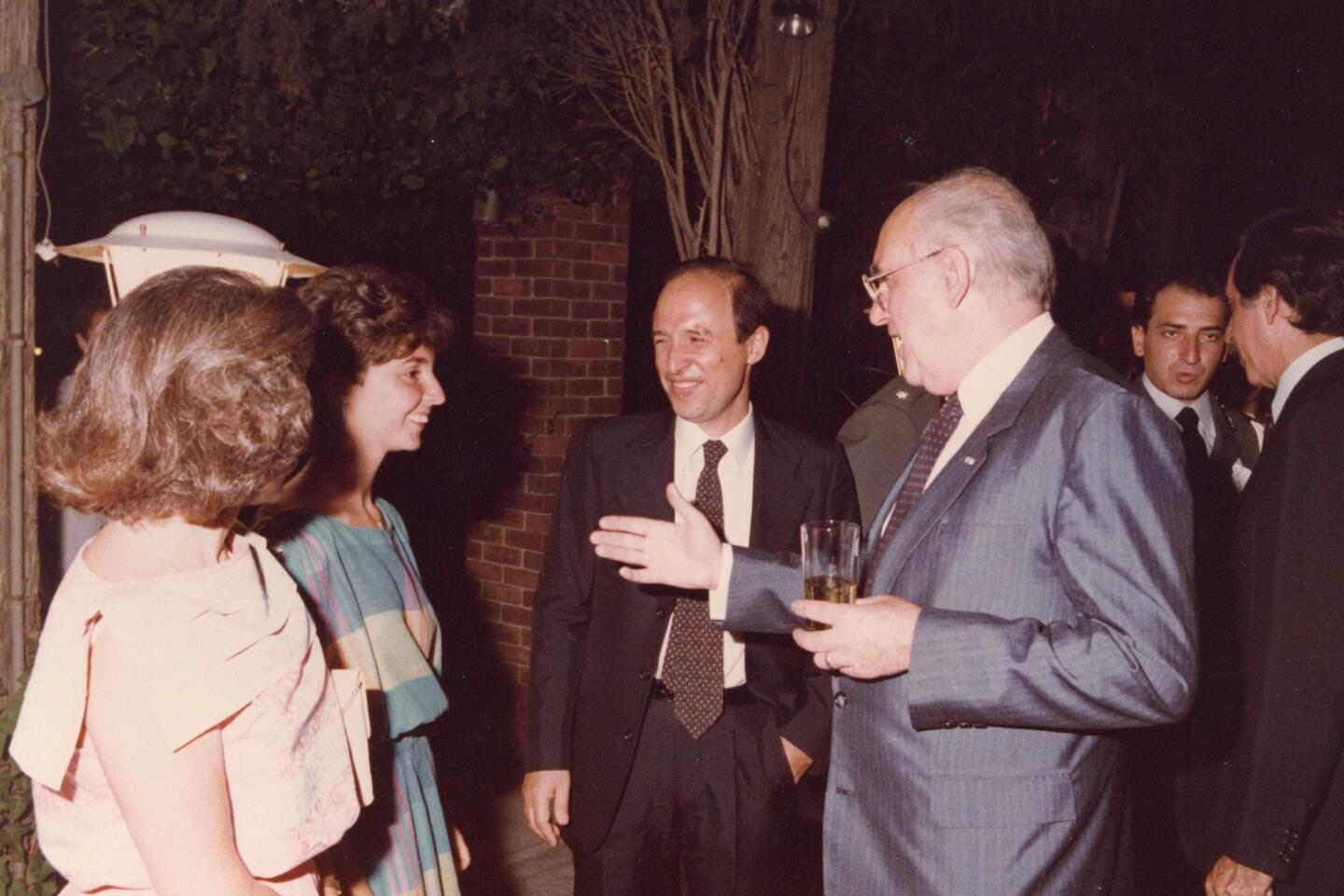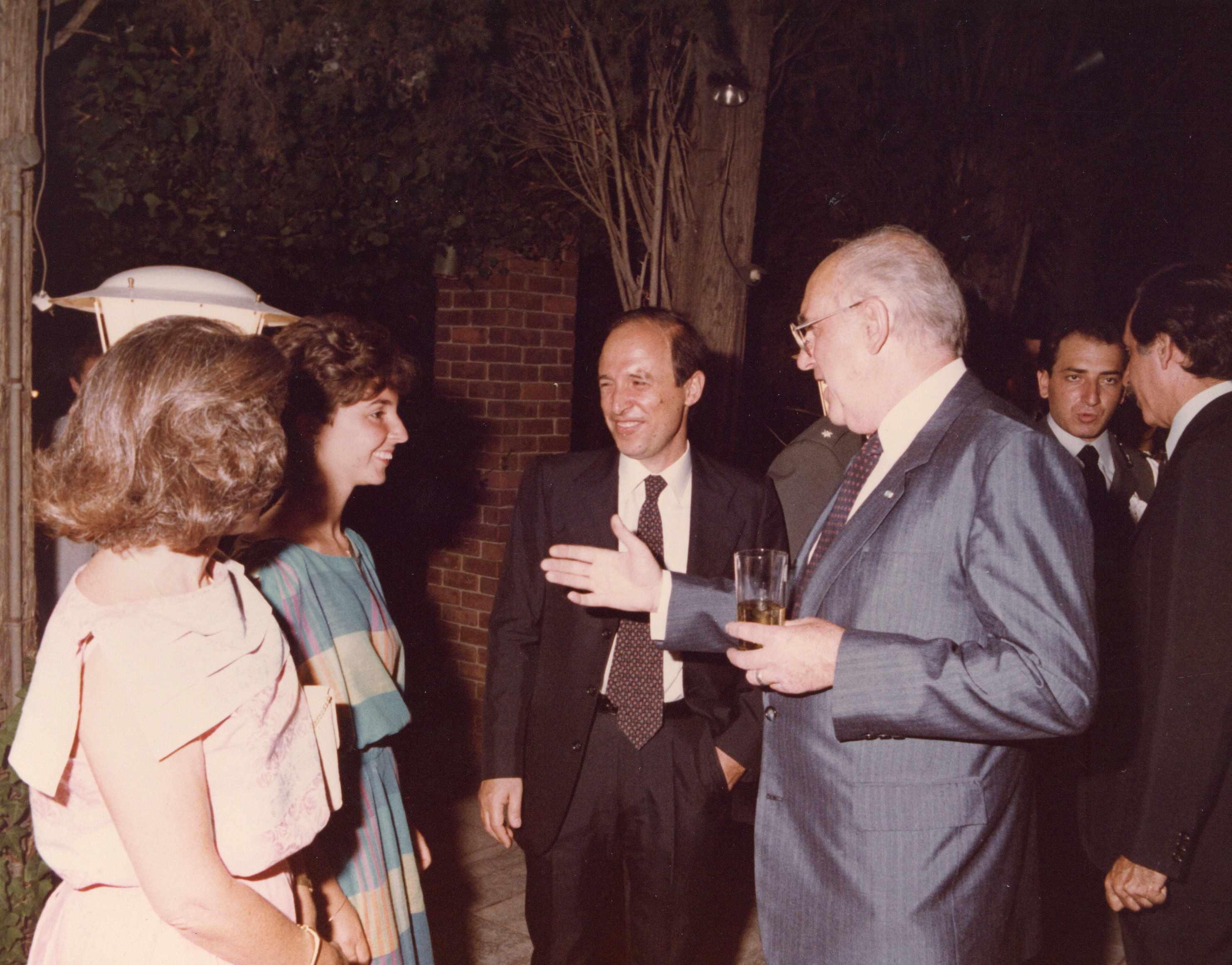 Κώστας Σημίτης, Δάφνη Σημίτη, Μαριλένα Σημίτη και Ανδρέας Παπανδρέου σε εκδήλωση, 27 Ιουλίου 1983 © Ίδρυμα Κώστα Σημίτη