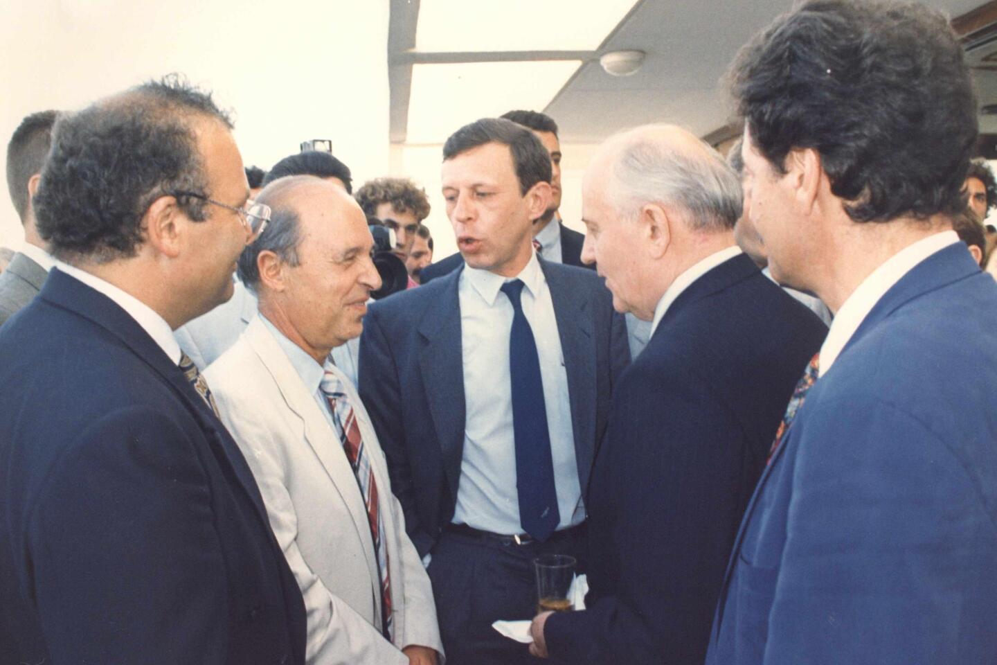 Συνάντηση Κώστα Σημίτη με τον Μιχαήλ Γκορμπατσόφ στο Πάντειο Πανεπιστήμιο, 13 Σεπτεμβρίου 1993 © Ίδρυμα Κώστα Σημίτη
