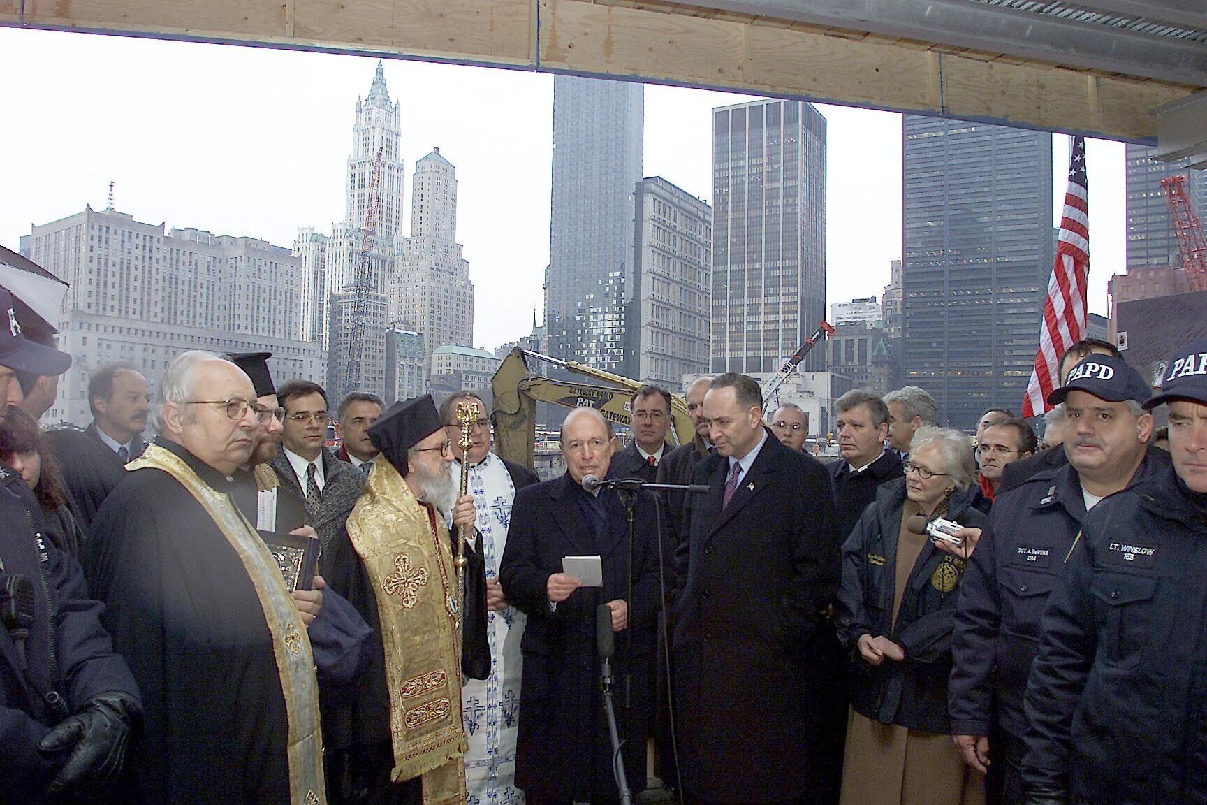 Ο Κώστας Σημίτης στο σημείο της τρομοκρατικής επίθεσης της 11ης Σεπτεμβρίου 2001, Ground Zero, Νέα Υόρκη