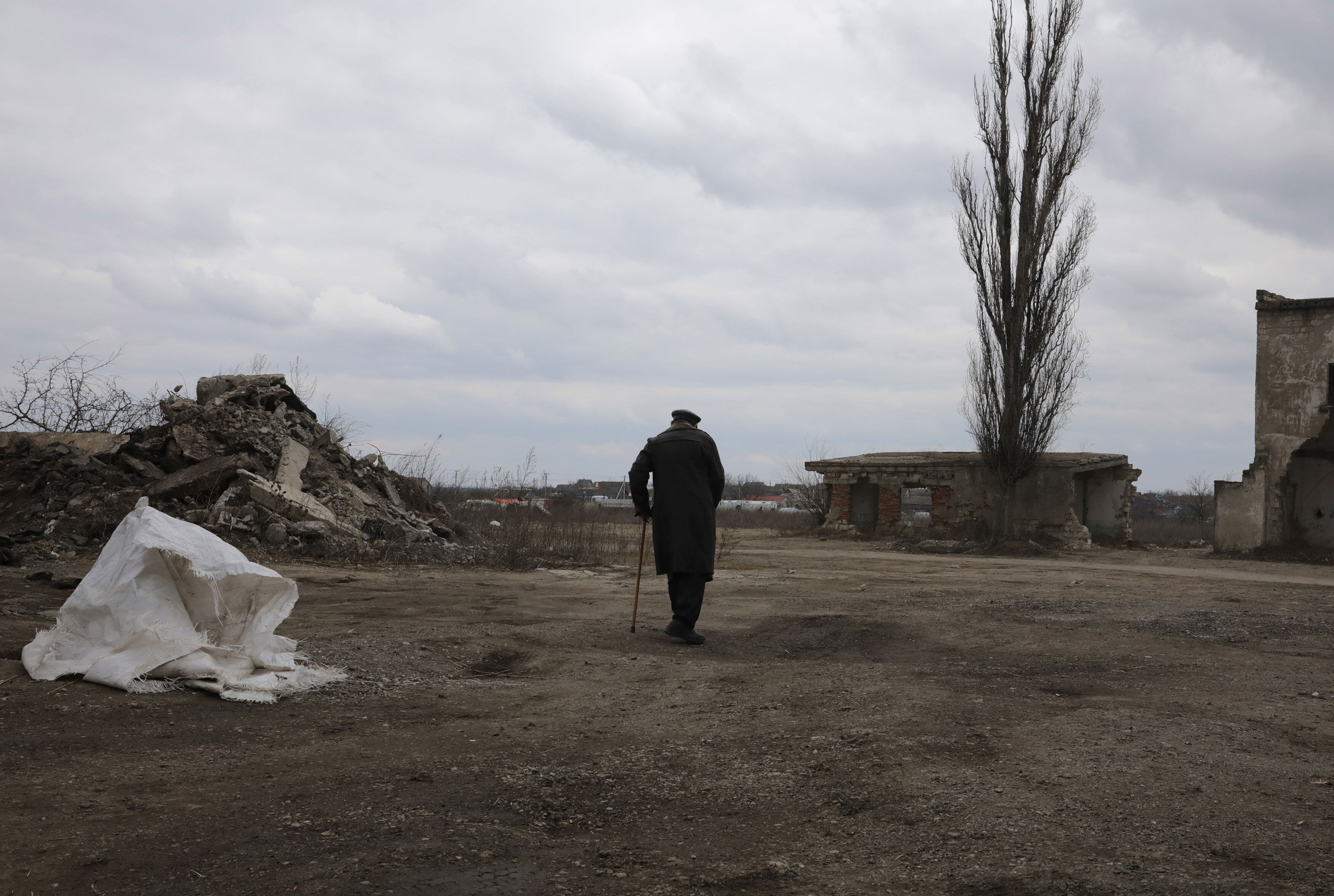 Ουκρανός ηλικιωμένος πρόσφυγας στη Μολδαβία κατευθύνεται σε σκηνή στον προσωρινό καταυλισμό που στήθηκε για τους εκτοπισμένους από τη ρωσική εισβολή στην Ουκρανία (13 Μαρτίου) © EPA/AMEL PAIN