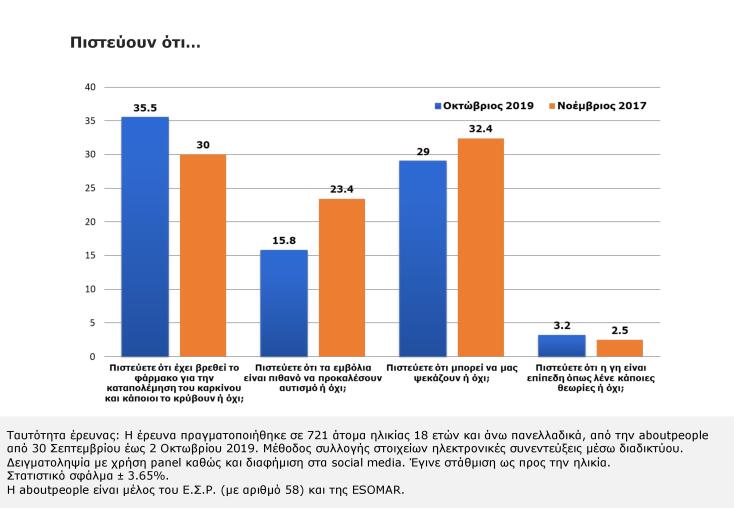 Όσον αφορά την υπόθεση ότι τα εμβόλια είναι πιθανό να προκαλέσουν αυτισμό, με αυτήν συμφωνεί το 15,8% των ερωτώμενων από 23,4% που το πίστευε δύο χρόνια πριν.