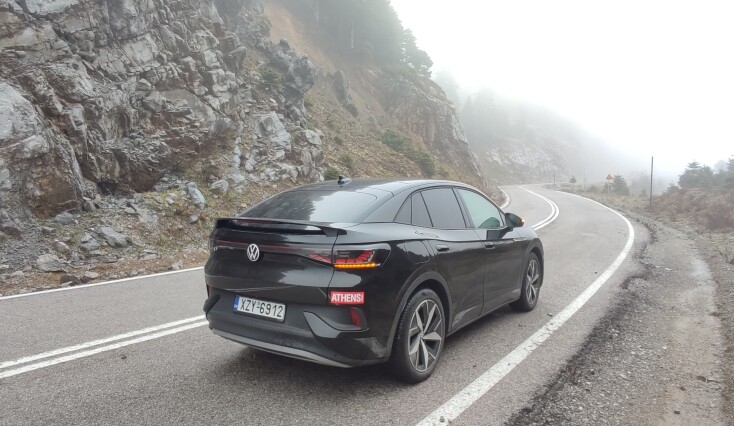 - Το ID. 5 e-SUV coupé της Volkswagen της δοκιμής μας διαθέτει τετρακίνηση και τροφοδοτείται από έναν ηλεκτροκινητήρα στον μπροστινό και τον πίσω άξονα συνδιαστικής ισχύος 299 ίππων και 460 Nm ροπής και εργοστασιακή τιμή μικτής αυτονομίας 490 χλμ.