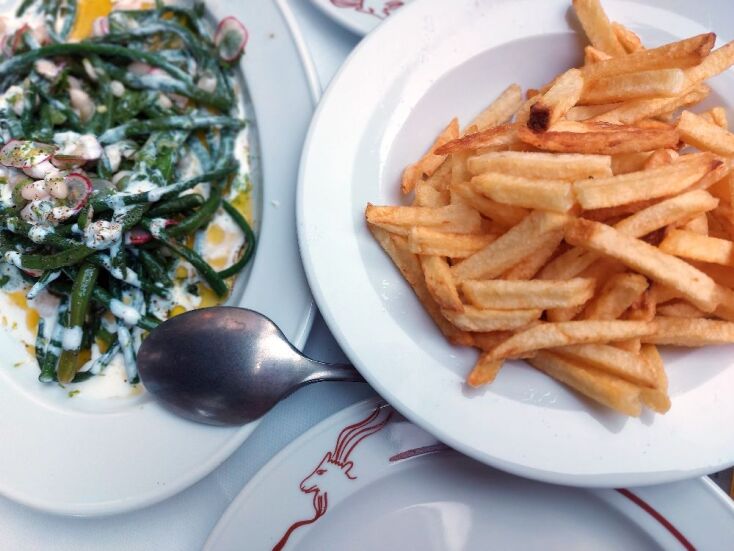 Έτσι κι εγώ, απλά και κατευθείαν, σας πάω στο «ψητό» που, από την αρχή να το πω, εξελίχθηκε σε ταβερνική εμπειρία ύψους, από αυτές που είχα πολλά χρόνια να ευχαριστηθώ τόσο πολύ. Ξεκινήσαμε στο Manari με πατάτες τηγανητές πολύ καλές και αλάδωτες (5,5 ευρώ), πεντανόστιμα μικρά και ζουμερά προβατίσια μπιφτεκάκια με ωραία βρασμένο και αρτυμένο σταμναγκάθι δίπλα τους (14 ευρώ), μια σαλάτα με αμπελοφάσουλα, ασπρομύτικα φασόλια και αριάνι (9 ευρώ) και μια κεφαλονίτικη κρεατόπιτα (11 ευρώ), ήταν πολύ πιο νόστιμη από αυτήν που συμπτωματικά έφαγα πριν λίγες μέρες στην ίδια την Κεφαλονιά –ωραία κομμάτια από κρέας, ωραίο φύλλο, μιλάμε για μεγάλη λιχουδιά!