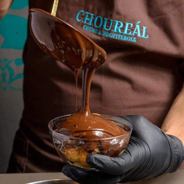 Το Choureal, που άνοιξε πρώτα στη Θεσσαλονίκη και τους τελευταίους μήνες κρύβεται σε μια μικρή κάθετο της Ερμού, δεν είναι συνηθισμένο μέρος. Είναι ο ναός του προφιτερόλ. Προφιτερόλ που φτιάχνεται μπροστά στα μάτια σου, από την αρχή. Με τρυφερά σουδάκια που γεμίζονται με βελούδινη κρέμα πατισερί ή με φρέσκο χειροποίητο παγωτό. Προφιτερόλ που δέχεται το χάδι από 9 διαφορετικές σοκολάτες Valrhona. Προφιτερόλ αξέχαστο.