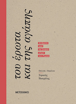 Ο βραβευμένος ποιητής επιλέγει και μεταφράζει «ποιήματα για τον έρωτα και την αγάπη. Ποιήματα του παλιού καιρού σαν το μεστό βαθυκόκκινο κρασί. Από την αρχαϊκή εποχή μέχρι τους καιρούς μας. Από τη Σαπφώ μέχρι τον Ρεμπώ. Από διάσημους και άσημους ποιητές. Ο έρωτας στην πιο πλατιά του μορφή. Η αγάπη στην πιο βαθιά εκδοχή της. Έρωτας άντρα και γυναίκας, έρωτας της φιλίας, αγάπη για τον άλλον, αγάπη για το άλλο μας μισό. Πόθοι, απολαύσεις, ηδονές και μετά το τίμημα οδυνηρό μα ευλογημένο. Δέσιμο, δόσιμο, μοίρασμα, και μετά το ματωμένο ρήγμα της απώλειας. Όλα ταγμένα στο πλευρό του αγαθού. Όλα βγαλμένα απ’ την αίσθηση του καημού και της χαρμολύπης».