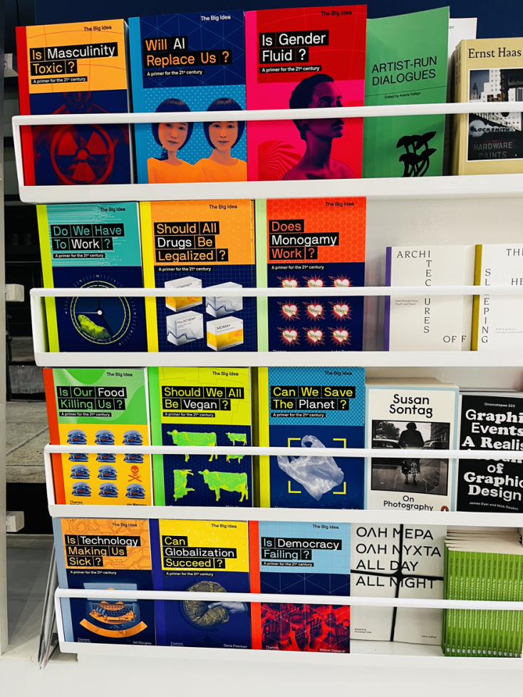 Πρόσωπα Οι δημιουργοί του Hyper Hypo είναι ο Ανδρέας Kόκκινος, στιλίστας, και ο Στάθης Μητρόπουλος, γραφίστας. Στο κατάστημα θα συναντήσεις την Τζορτζίνα με την οποία πιάνουμε να λύσουμε ένα ένα όλα τα ερωτήματα των βιβλίων «The Big Idea» (βλ. φωτό) όπως: «Είναι απαραίτητο να εργαζόμαστε;», «Δουλεύει η μονογαμία;», «Θα μας κυριεύσει η τεχνητή νοημοσύνη;» κ.λπ. (δεν έχουμε λύσει κανένα ακόμα…). Για μένα όμως η μεγάλη προσωπικότητα είναι ο κύριος Μιχάλης, που έχει το καφενείο στο υπόγειο της στοάς και παρέχει το καύσιμο όλου του κτιρίου υπό μορφή καφέ και τόστ. Αυτό το κάνει από τον Ιούνιο του 83, «Από τότε που ορκίστηκε η δημοτική αστυνομία» τονίζει. Μαθαίνω ότι το πολυώροφο κτίριο, στο ισόγειο του οποίου βρίσκεται το βιβλιοπωλείο, κάποτε στέγαζε 2.000 ράφτες και ήταν από τα μεγαλύτερα κέντρα ενδυματοποιίας στα Βαλκάνια: «Έμπαινε ύφασμα και έβγαινε ρούχο!» (φαντάζομαι στο μεταξύ εγώ 2.000 τοστάκια). Το πιο σημαντικό βέβαια ο κ. Μιχάλης το φυλάει για το τέλος, υπάρχει ένα δώμα με εκπληκτική θέα στην Ακρόπολη και το αγόρασε προσφάτως ο Jean-Paul Gaultier! (+1 τοστ και καφέ… μάλλον γαλλικό).