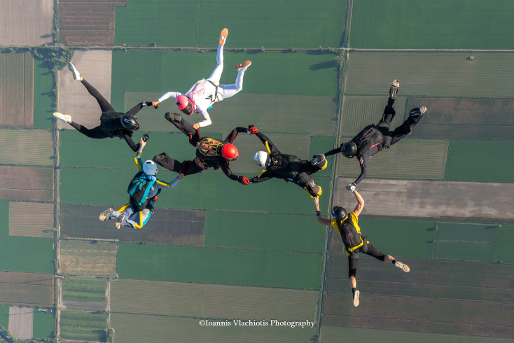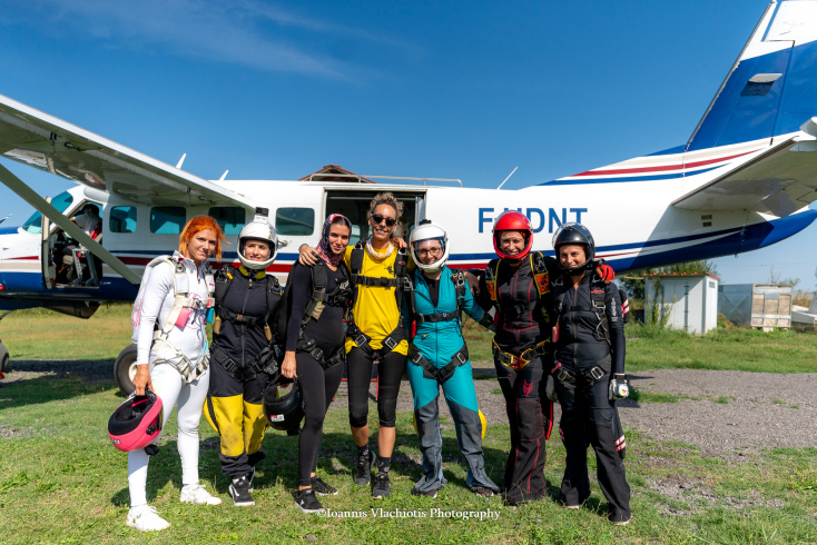 Βουητό και κρύος αέρας γεμίζουν την καμπίνα. Οι επτά ατρόμητες συνεπιβάτισσες του αεροπλάνου, η μία πίσω από την άλλη, βουτούν και χάνονται στα σύννεφα σε κλάσματα δευτερολέπτου. Ο στόχος τους; Να πετύχουν έναν συγκριμένο σχηματισμό μέσα σε λίγο χρόνο πάνω από την περιοχή της Κωπαΐδας – πρωτοφανές για τα ελληνικά δεδομένα (ανεπίσημο ρεκόρ). Και το πέτυχαν!