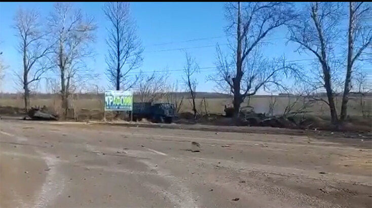 14.44 Εικόνες από το Χάρκοβο δείχνουν ρωσικό στρατιωτικό κομβόι να έχει καταστραφεί. Νεκροί Ρώσοι στρατιώτες βρίσκονται στο έδαφος.