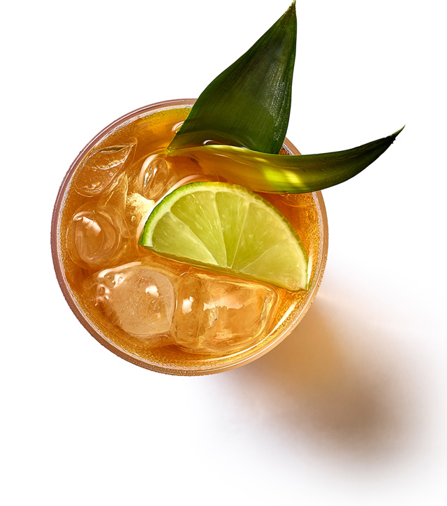 3. Γαρνίρετε με δύο φύλλα ανανά και μια φέτα lime.