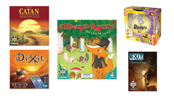 Παιχνίδια «Exit», «Dobble», «Οι άποικοι του Κατάν», «Dixit», «Η πονηρή αλεπού»
