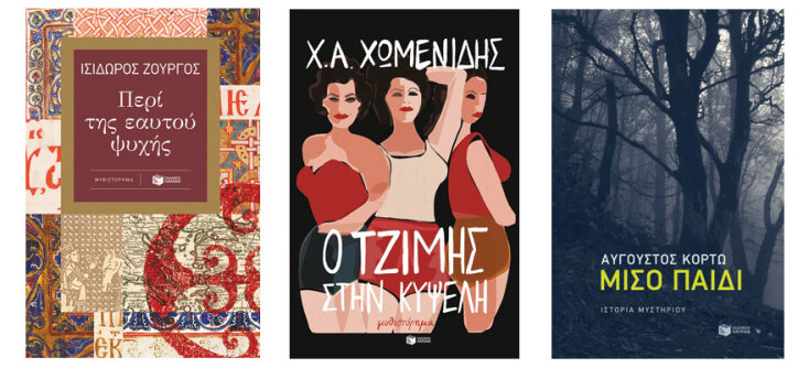 Το «Περί της εαυτού ψυχής» είναι ένα εσωτερικό χρονικό για τον τρόπο που ένας αντιγραφέας γίνεται συγγραφέας, ένα μυθιστόρημα περιπέτειας και ελευθερίας. «Ο Τζίµης στην Κυψέλη» είναι ένα μυθιστόρημα για όσους ανεπαισθήτως μένουν πίσω, σε έναν κόσμο που αλλάζει ραγδαία. Το «Μισό παιδί» μια ιστορία μυστηρίου που σου κλέβει την ανάσα, για το παιδί που αιματοκύλισε το Χρυσοδέντρι και την αναζήτηση της αλήθειας στα αναπάντητα ερωτήματα.