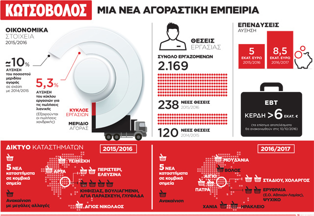 Δυναμική επέκταση του δικτύου καταστημάτων της Κωτσόβολος με δημιουργία σύγχρονων καταστημάτων. Σημαντική αύξηση του μεριδίου αγοράς και της κερδοφορίας.