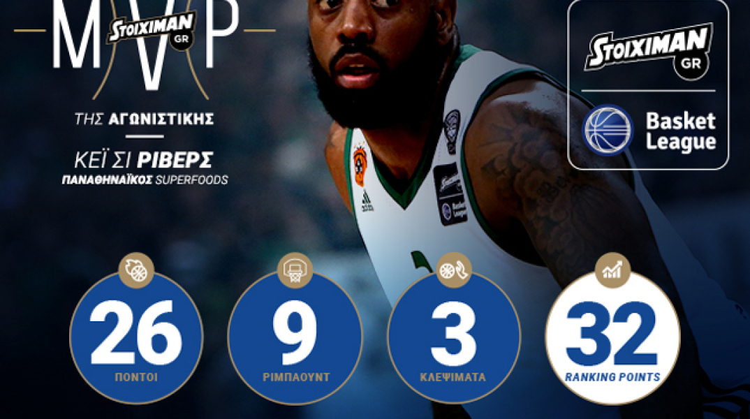Ο Κέι Σι Ρίβερς ήταν ο μεγάλος πρωταγωνιστής του ντέρμπι της STOIXIMAN.GR Basket League και ως επιστέγασμα της παρουσίας του ήρθε η ανάδειξη του σε STOIXIMAN.GR MVP της 15ης αγωνιστικής.