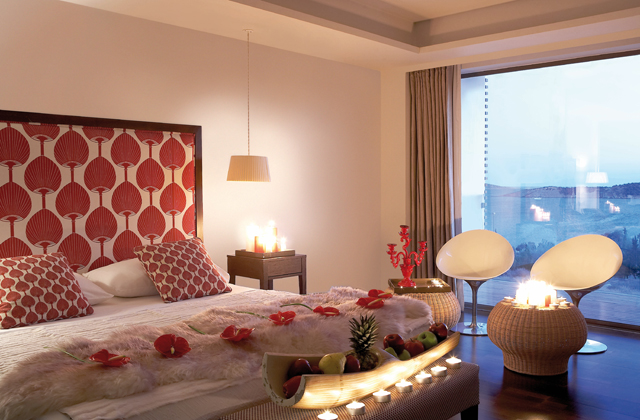 Ρομαντικό καλωσόρισμα με αφρώδη οίνο και σοκολατάκια στο δωμάτιο κατά την άφιξη