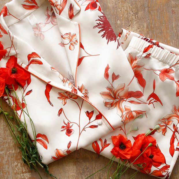 Tο λευκό φόντο υπογραμμίζει τις ζωηρές πινελιές χρώματος όπως το πορτοκαλί και το κίτρινο που συνδυάζονται κομψά με floral prints τα οποία θυμίζουν μπουκαμβίλια, το γνωστό μεσογειακό φυτό.