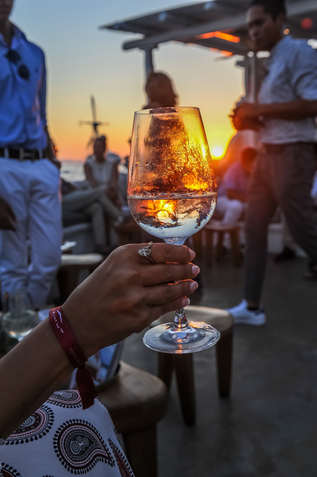 Μαγευτικό ήταν το σκηνικό που διαμορφώθηκε στην πανέμορφη παραλία του Solymar με ένα εξωτικό playground από χαλιά και μαξιλάρες, όπου υπό τους ήχους του σαξοφώνου, οι καλεσμένοι χαλάρωναν απολαμβάνοντας γεύσεις από το sushi corner menu του αγαπημένου beach club restaurant, συνοδεία εκλεκτών κρασιών της Ferrari Trento.