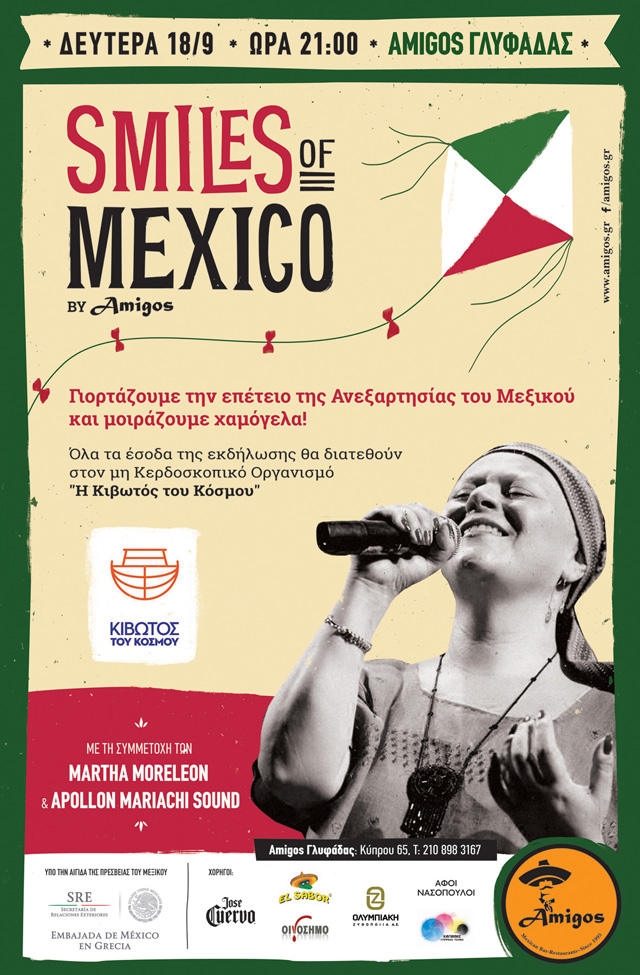 Την Δευτέρα 18 Σεπτεμβρίου 2017, στις 9μμ, μας περιμένουν στο Amigos της Γλυφάδας για να γιορτάσουν μαζί μας αυτή την ξεχωριστή επέτειο μαζί με άφθονη μαργαρίτα Cuervo, μοναδικές Μεξικάνικες γεύσεις αλλά και την δημοφιλή Μεξικάνα τραγουδίστρια Martha Moroleon συνοδευόμενη (μουσικά) από τους Apollon Mariachi sound!
