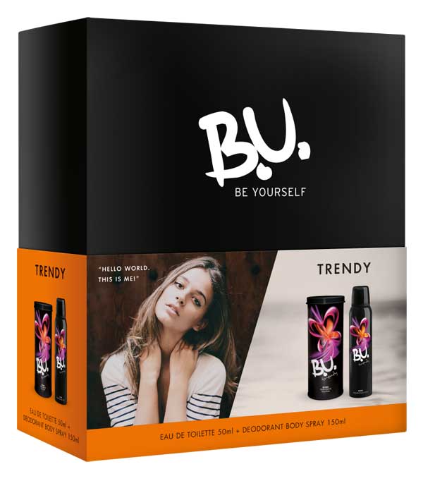 To B.U. χαρίζει στις νεαρές του φίλες την απόλυτη εμπειρία να είναι ο εαυτός τους με κάθε ευκαιρία, είτε χρησιμοποιούν το B.U. άρωμα που ταιριάζει στην προσωπικότητά τους, είτε το αντίστοιχο deodorant, είτε το συνδυασμό και των δύο, τα σετ δώρων B.U. (που περιλαμβάνουν άρωμα & deodorant),