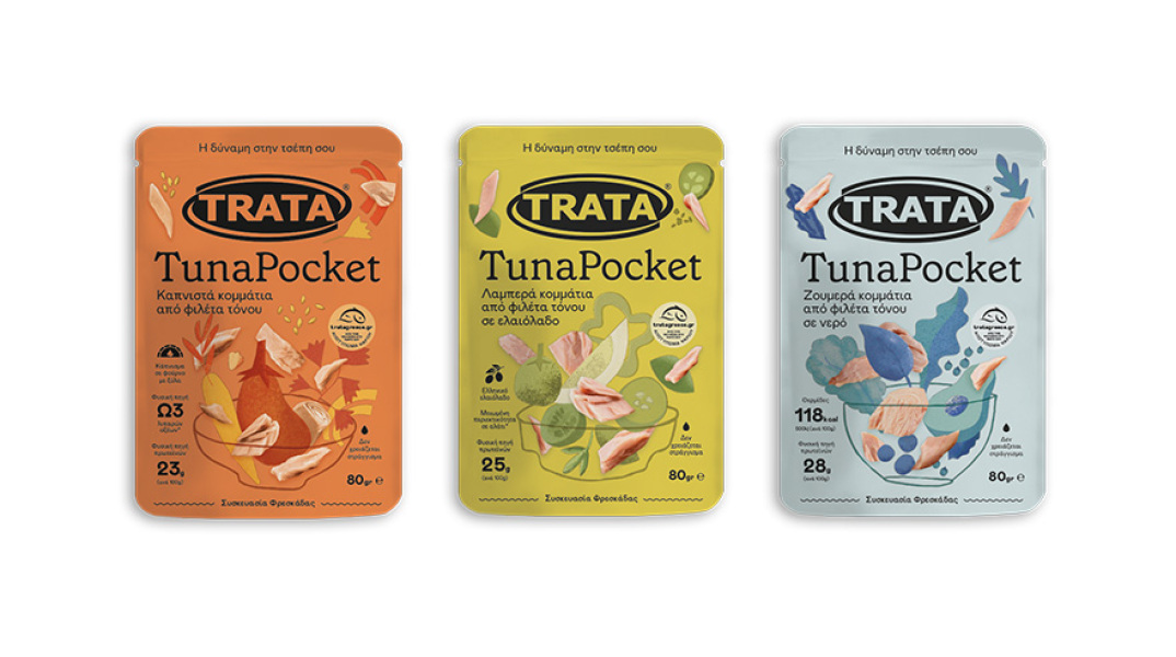 Αυτήν τη φορά δημιουργεί έξω από το κουτί και λανσάρει τη νέα σειρά TUNA POCKET TRATA σε νέα πρακτική συσκευασία pouch των 80gr, σε 3 αγαπημένες γεύσεις τόνος καπνιστός, σε ελαιόλαδο και σε νερό.