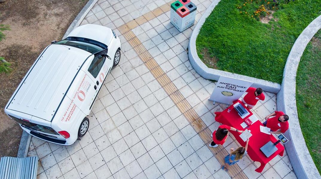 Ένα κινητό «πράσινο» σημείο κυκλοφορεί σε 15 πλατείες της Αθήνας δίνοντας την ευκαιρία στους δημότες να ζυγίζουν τα απορρίμματά τους και να «ανταμείβονται»