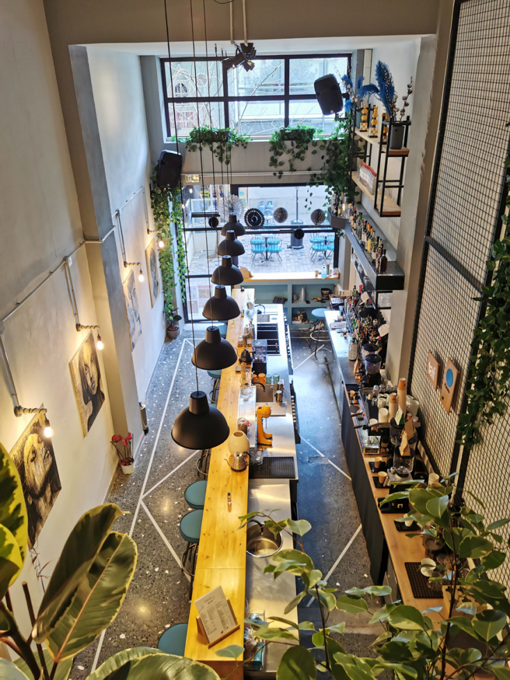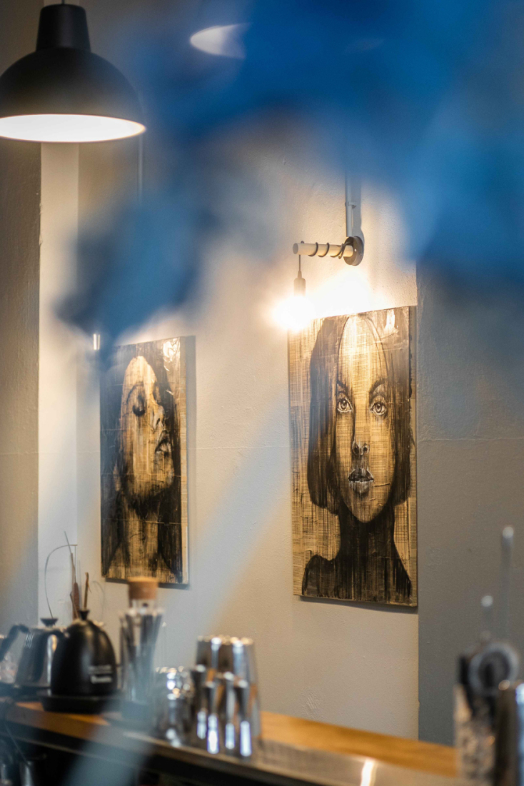 H urban chic διακόσμηση του χώρου δεν σας αποσπά από την απόλυτη εμπειρία του φρεσκοαλεσμένου καφέ, των εξαιρετικών spirits και των cocktails με τα φρέσκα φρούτα. Τους τοίχους του κοσμούν τα έργα της Ρανιώς Σαρρή. Από τη στιγμή που μπαίνετε μέσα, βρίσκεστε σε ένα cozy περιβάλλον, με χαλαρή ατμόσφαιρα που σας τραβάει από νωρίς το πρωί έως αργά το βράδυ για ραντεβού με το ταίρι σας ή βόλτα με φίλους.