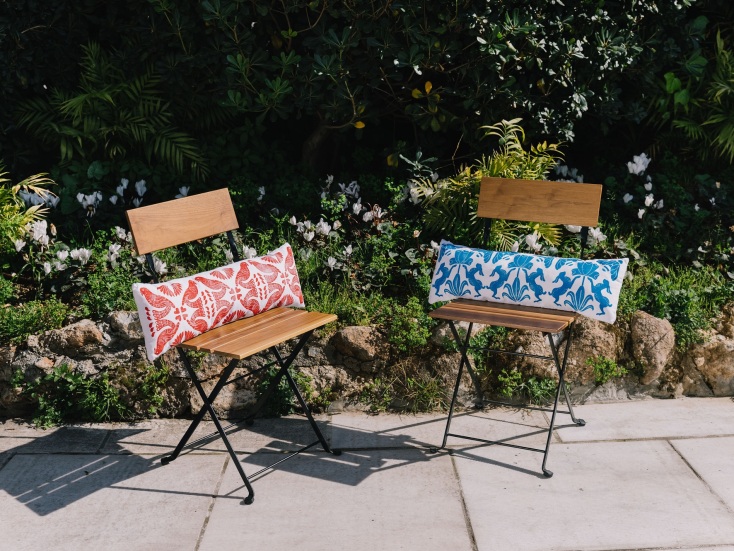 Παράλληλα, στο Cycladic Shop διατίθεται μια ιδιαίτερη συλλογή διακοσμητικών μαξιλαριών. Τα υφάσματά τους είναι εικονογραφημένα με σχέδια και μοτίβα από την παραδοσιακή αρχιτεκτονική της Τήνου, με θέματα από τη φύση του Αιγαίου, αποτυπώνοντας έτσι την αρμονική σχέση του ανθρώπου με το περιβάλλον του.