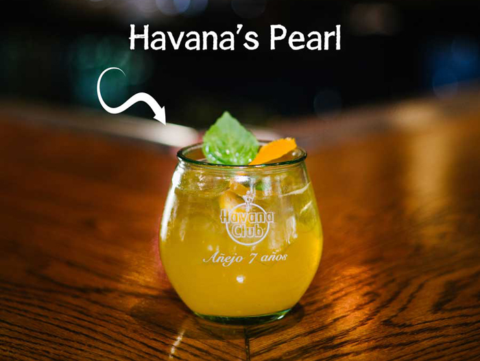 Havana’s Pearl: Havana Club Añejo 7 Años, passion fruit, πικραμύγδαλο, φρέσκο λεμόνι και lime, σιρόπι αγαύης, φύλλα βασιλικού, μπίρα.