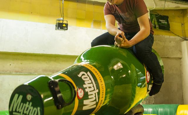 Πάμε και στην ξενάγηση. Το hostel έχει 7 δωμάτια, το καθένα από τα οποία είναι και μια διαφορετική εμπειρία. Η κοπέλα της παρέας έτυχε να μπει σε εκείνο όπου άνθρωποι της SYOSS της έκαναν αλλαγή στο χτένισμα. Ήταν εντυπωσιακό, αν και η Μαρία έχει μια τρέλα με την κόμμωσή της γενικώς, βγήκε πολύ ευχαριστημένη και το χάρηκε. Εγώ μπήκα στο δίπλα και κάτι τύποι με laser άρχισαν να με σημαδεύουν. «Σιγά ρε παιδιά», τίποτα αυτοί. Αλλά κι εγώ πήρα το όπλο μου. Σε ένα από τα άλλα δωμάτια, όπως άκουσα, κάποια παιδιά από το Sake Tattoo Crew χτύπαγαν Blind InsTattoo στο σκοτάδι.