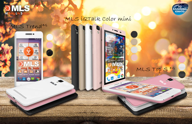 - Το MLS Color mini 4G σε 4 μοναδικά χρώματα. Ροζ μπροστά και πίσω, σαμπανιζέ, μαύρο και άσπρο. Με Dual SIM δυνατότητα, 16GB μνήμη.