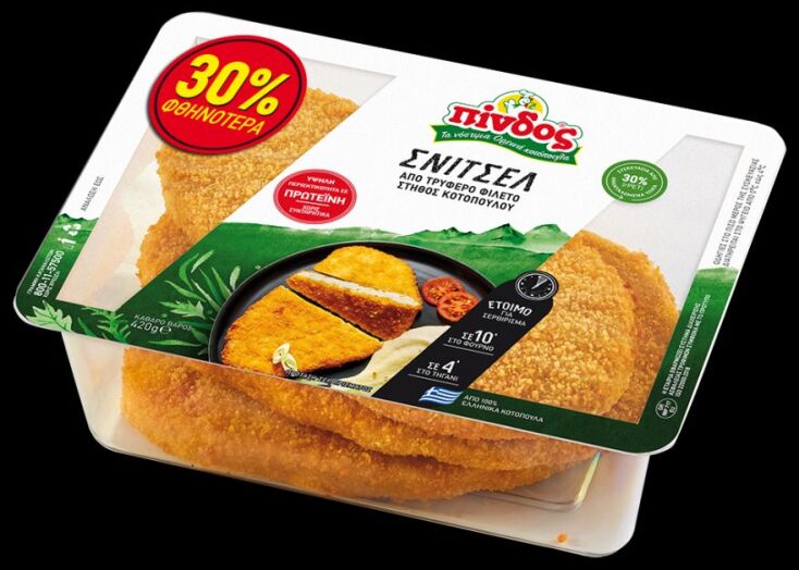 Και ενώ αμφιταλαντευόμουν ανάμεσα στο να παραγγείλω ή να σερβίρω τοστ στους φίλους μου, σε έναν από τους διαδρόμους του σούπερ μάρκετ το μάτι μου πέφτει στη νέα σειρά της ΠΙΝΔΟΣ «Έτοιμα Ψημένα». Διαβάζω στη συσκευασία ότι πρόκειται για έτοιμα, θρεπτικά γεύματα που χρειάζονται μόλις 4’ ψήσιμο στο τηγάνι (ή 10’ στον φούρνο). Ό,τι ακριβώς χρειάζομαι δηλαδή! Για να τα δοκιμάσω, αποφασίζω να πάρω το σνίτσελ, του οποίου άλλωστε είμαι μεγάλος φαν. Φτάνω σπίτι και τα ρίχνω αμέσως στο τηγάνι. Τέσσερα λεπτά ακριβώς αργότερα, έχω στο πιάτο μου στην εντέλεια παναρισμένα κομμάτια κοτόπουλου, τραγανά απ’ έξω, αλλά και ζουμερά στο εσωτερικό τους, τόσο νόστιμα που άνετα θα μπορούσαν να είχαν σερβιριστεί σε κάποιο καλό εστιατόριο.
