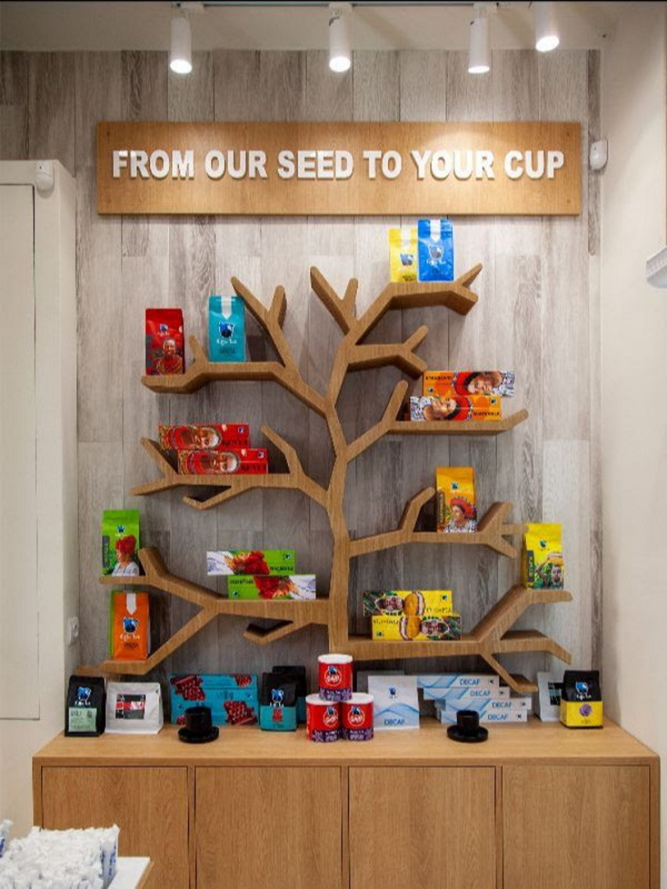 To καφεκοπτείο των καταστημάτων αλλάζει επίσης εικόνα και παίρνει τη μορφή ενός καφεόδεντρου, με μήνυμα: