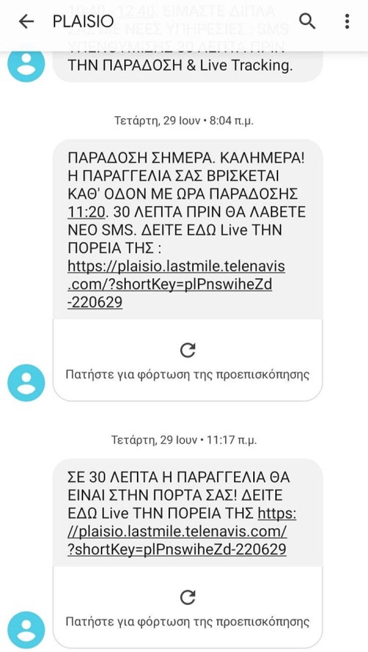 Συγκεκριμένα, ξύπνησα το πρωί και το Πλαίσιο μου είχε στείλει ήδη ενημερωτικό sms για την εκτιμώμενη ώρα παράδοσης του δέματός μου. Παράλληλα, ενεργοποιήθηκε ένα link που μου έδινε τη δυνατότητα να παρακολουθώ live σε χάρτη που βρίσκεται το φορτηγό με την παραγγελία μου, κάτι που βρήκα αρκετά εντυπωσιακό αφού είχα τη δυνατότητα να κάνω τις πρωινές δουλειές στη γειτονιά μου, χωρίς να με δεσμεύει κάτι για να είμαι στο σπίτι.