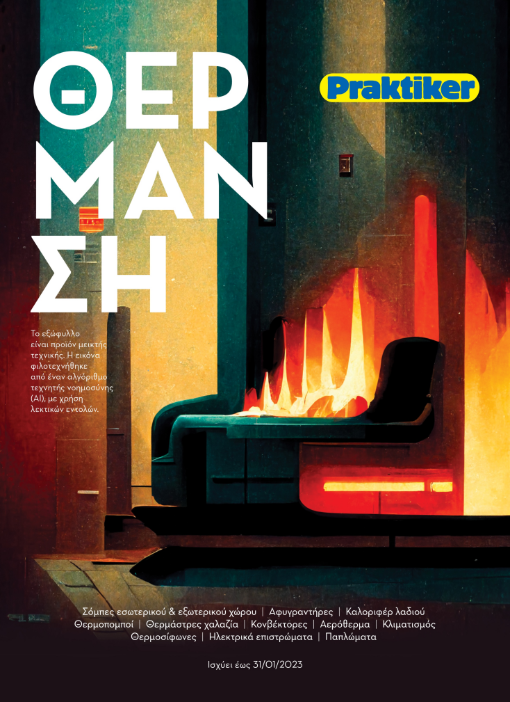 Είναι η περίοδος που μαζευόμαστε γύρω από το τζάκι, δεν ξεκολλάμε από το Netflix και νιώθουμε την ανάγκη να αφιερώνουμε περισσότερο χρόνο στο σπίτι, εκεί που βρίσκουμε καταφύγιο από το χειμωνιάτικο κρύο. Ο χειμώνας θέλει θαλπωρή κι εμείς θέλουμε ανεβασμένη θερμοκρασία, χωρίς να μας τρομάζουν οι ανεβασμένοι λογαριασμοί. Θέλουμε πρακτικότητα και οικονομία, ποιότητα και άνεση, θέλουμε χωρίς δεύτερη σκέψη Praktiker. Η Praktiker μας συστήνει έναν ολοκαίνουργιο κατάλογο θέρμανσης με όλα τα απαραίτητα προϊόντα και είδη που θα μας εξοπλίσουν τον φετινό χειμώνα. Τα “heats” για να έχουμε ζεστό σπίτι βρίσκονται στον Νο1 προορισμό για είδη σπιτιού και DIY κι εμείς δεν έχουμε παρά να ξεφυλλίσουμε τον κατάλογο της Praktiker, όχι μόνο για να δούμε τις διαθέσιμες συσκευές και αξεσουάρ θέρμανσης, αλλά και για να βρούμε όλες τις χρήσιμες οδηγίες που θα βοηθήσουν να επιλέξουμε την πιο συμφέρουσα λύση ανάλογα με τον χώρο μας. Interesting Info: η εικόνα του εξωφύλλου του καταλόγου της είναι φτιαγμένη από τεχνολογία ΑΙ και μάλιστα πρόκειται για τον πρώτο κατάλογο στο είδος του που είναι σχεδιασμένος με αυτή την καινοτομία.