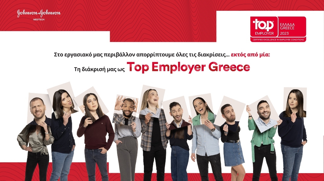 Στοχεύοντας ψηλά και μεριμνώντας για τη βελτίωση της εργασιακής εμπειρίας, η Johnson & Johnson κατέκτησε για δεύτερη συνεχή χρονιά τον τίτλο του Κορυφαίου Εργοδότη στην Ελλάδα από το Top Employers Institute, τον Παγκόσμιο Οργανισμό που αναγνωρίζει την αριστεία στις πρακτικές Ανθρώπινου Δυναμικού.