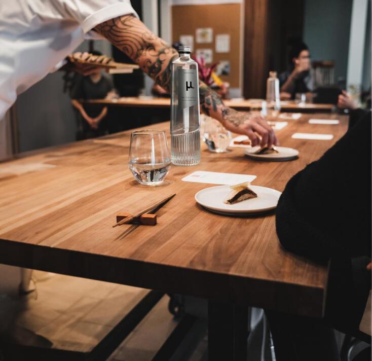 Το μ. είναι ένα υψηλής ποιότητας artisan νερό το οποίο εμφιαλώνεται κατευθείαν από την πηγή, χωρίς να υποστεί καμία επεξεργασία ή ανθρώπινη παρέμβαση. «Ένα πραγματικό δώρο της φύσης», θα λέγαμε. Χάρη στην καθαρότητα, το αλκαλικό pH του και τη σύνθεση των ορυκτών του, ξεδιπλώνει έναν εκλεπτυσμένο χαρακτήρα, ιδανικό να συνοδεύσει κάθε fine dining εμπειρία. Η ιδιαίτερη, γυάλινη φιάλη του (πραγματικά, το design της είναι υπέροχο) έρχεται να υπογραμμίσει όλα τα premium χαρακτηριστικά του μ. μέσα από τον πιο κομψό τρόπο: Στο τραπέζι, μοιάζει σαν να αποτελεί μέρος της art de la table. Άλλωστε, δεν είναι τυχαίο που βραβευμένα εστιατόρια και chefs δείχνουν ήδη στο μ. την προτίμησή τους.