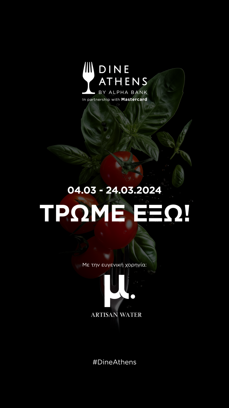 Στη μεγάλη γαστρονομική γιορτή της πόλης, το 8ο Dine Athens από την Alpha Bank σε συνεργασία με τη Mastercard, θα έχουμε την ευκαιρία να γνωρίσουμε το νέο premium μ. Artisan Water