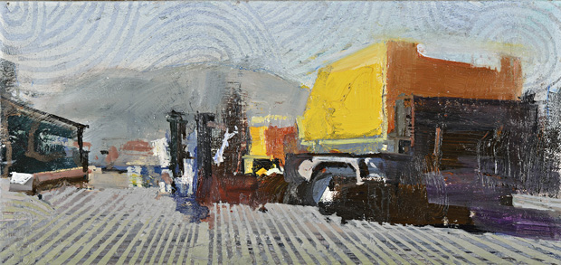 Τα τοπία επαναπροσδιορίζονται μέσω μιας ενστικτώδους και αναμοχλευτικής ζωγραφικής διαδικασίας. Είναι μια περιπλάνηση στο οργανικό κύτταρο του αστικού κέντρου και τα παράκτια βιομηχανικά άκρα του, τα οποία συνομιλούν και ενεργοποιούν τη μεταβατική πρόθεση του ζωγράφου.