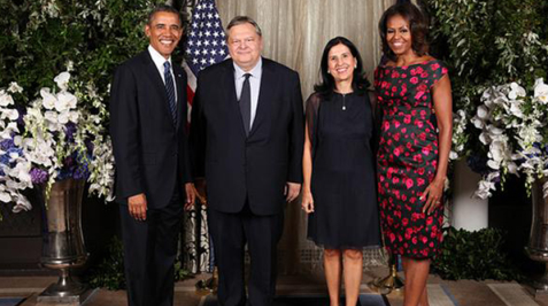 Δόθηκε στην δημοσιότητα η εθιμοτυπική φωτογραφία του Β. Βενιζέλου με τον Μ. Ομπάμα. Ο υπουργός Εξωτερικών και αντιπρόεδρος της κυβέρνησης συναντήθηκε με τον πρόεδρο των ΗΠΑ κατά την διάρκεια της δεξίωσης που παρέθεσε ο Αμερικανός πρόεδρος στους εκπροσώπους των κρατών που παίρνουν μέρος στην 68η σύνοδο της Γενικής Συνέλευσης του ΟΗΕ. Στην φωτογραφία ο Ομπάμα συνοδεύεται από τη σύζυγό του Μισέλ και Βενιζέλος από τη σύζυγό του Λίλη Βενιζέλου-Μπακατσέλου.